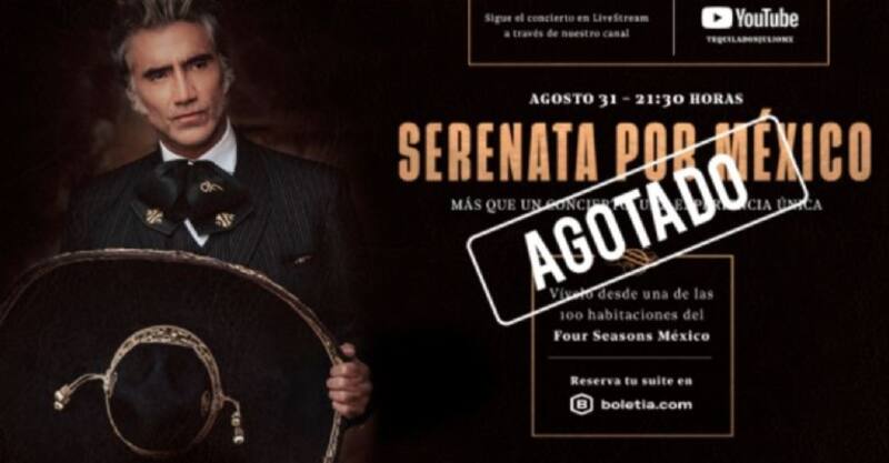 “Estoy muy contento de regresar a los escenarios y en este formato, ya que parece que estamos en una serenata”, dijo Alejandro Fernández, vestido con traje de charro color negro y botonadura dorada, durante el concierto virtual y gratuito que dedicó a su padre, Vicente Fernández, desde el hotel Four Seasons de Ciudad de México.