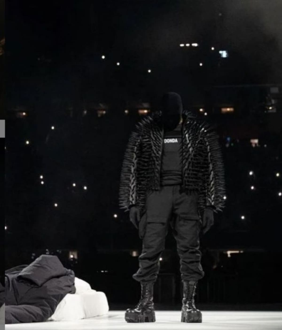 La socialité acudió a la presentación en compañía de sus hijos y por supuesto, su outfit tenía que combinar con el de West: ambos en ropa entallada en color negro y con pasamontañas; ella con tacones altos y peinada con una trenza que le llega debajo de la cintura, mientras que él usó pantalones tipo cargo y una especie de chaleco con la leyenda "Donda" en la espalda.