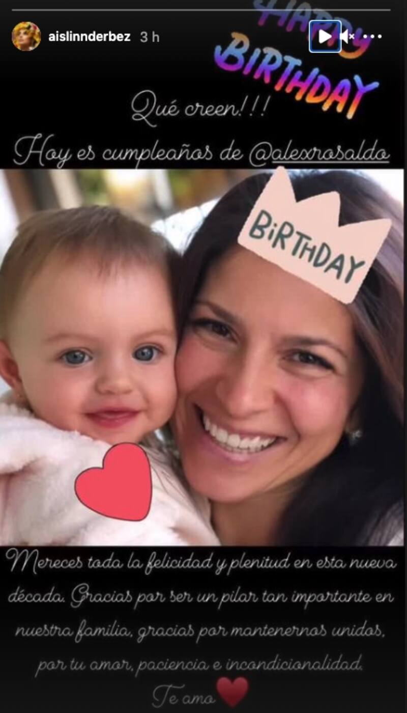 Aislinn Derbez publicó en sus Instagram Stories, una fotografía de Alessandra Rosaldo en la que aparece cargando a su pequeña hija Kailani, cuando ella aún era bebé, la cual acompañó de un mensaje para la actual esposa de su papá.