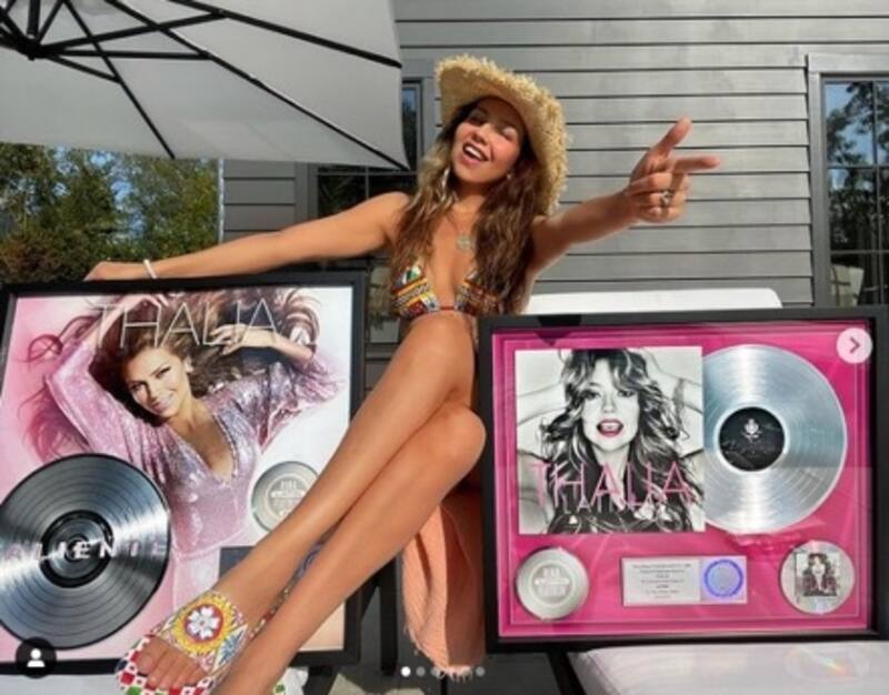 Thalía está imparable y su música está pegando como nunca, por eso recibió un disco de platino por el álbum "Latina" y dos discos de platino por "Valiente".
