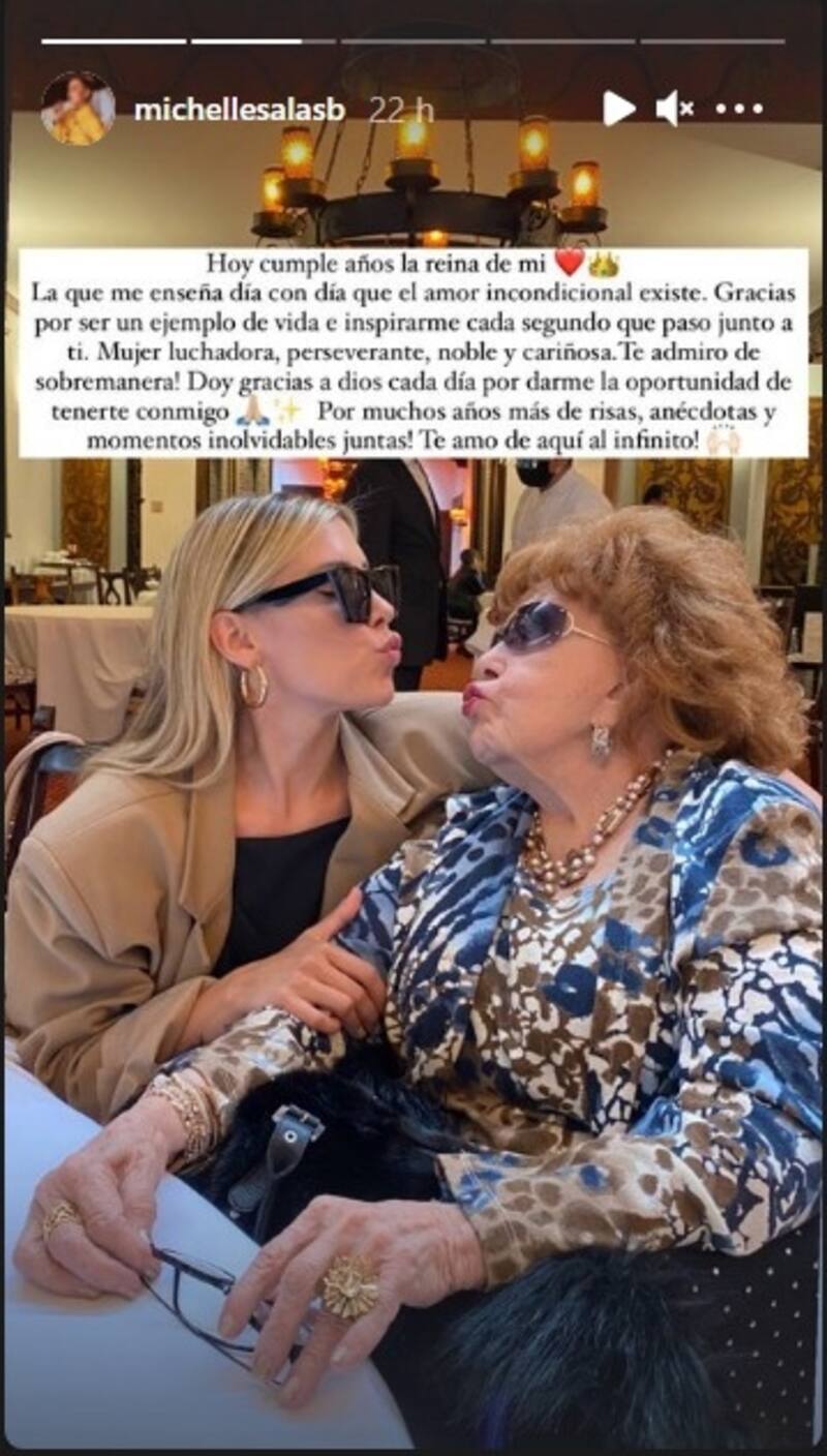 Actualmente, la hija de Stephanie Salas se encuentra en Italia. Sin embargo, eso no fue impedimento para enviarle un mensaje de felicitación a su bisabuela. En su sección de historias de Instagram, Michelle compartió una fotografía en la que aparece posando al lado de Silvia Pinal.