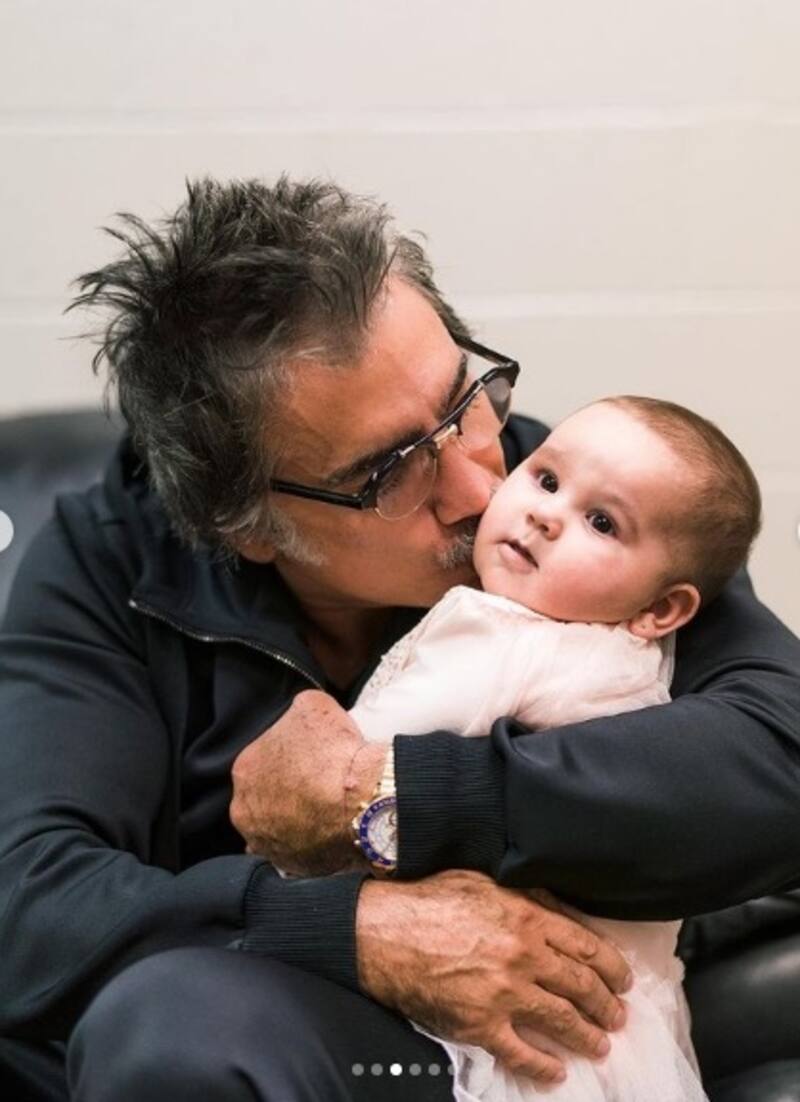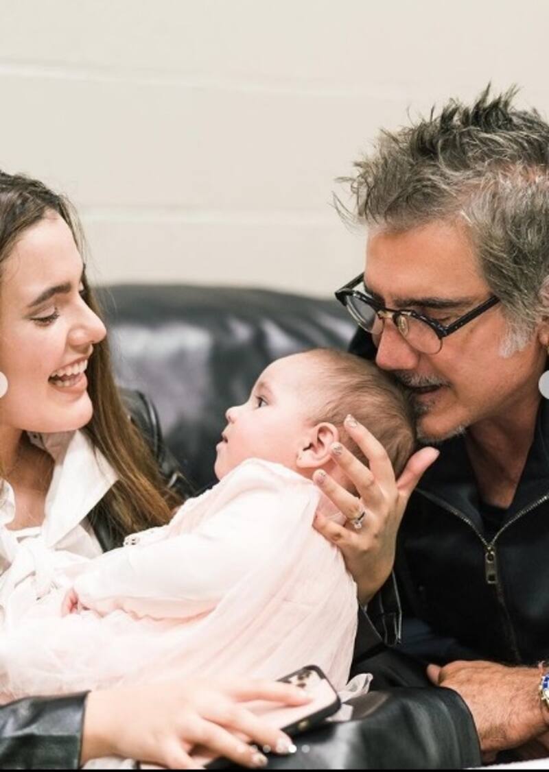 Esta foto deja ver que, por un lado, "El Potrillo" sufre por ver a su padre Vicente Fernández en el hospital, pero también se llena de amor y nuevas esperanzas con la nieta.
