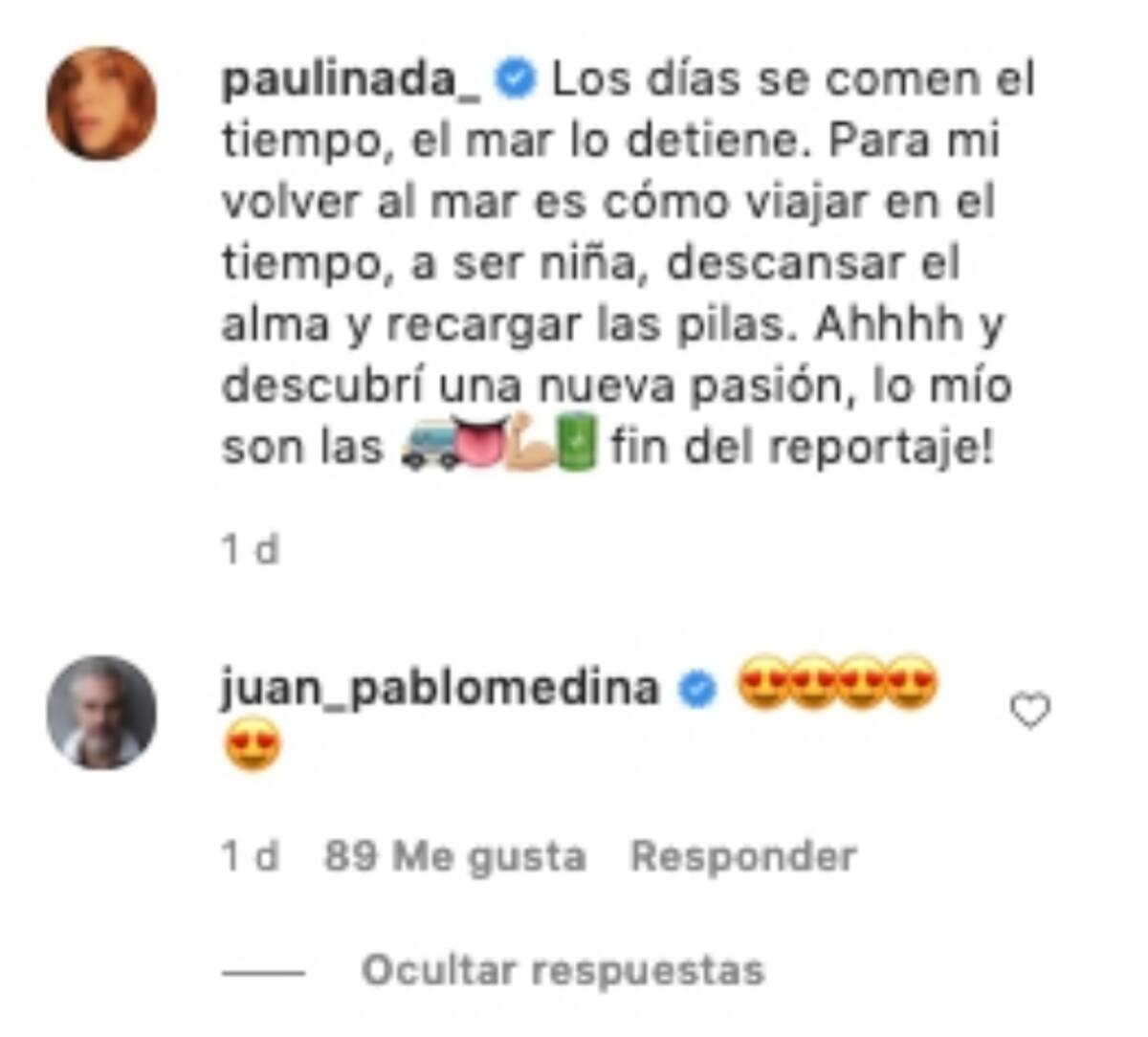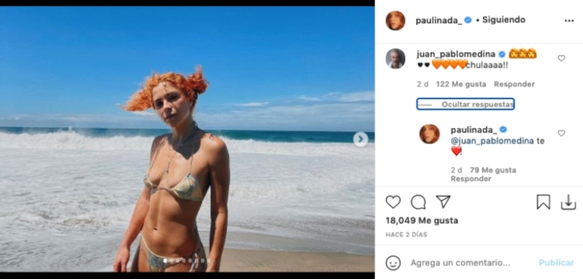 Mientras que en las siguientes galerías de Paulina Dávila, Juan Pablo Medina reaccionó con algunos corazones y otras caritas de emoji enamorado, a lo que la colombiana respondió con más emojis.