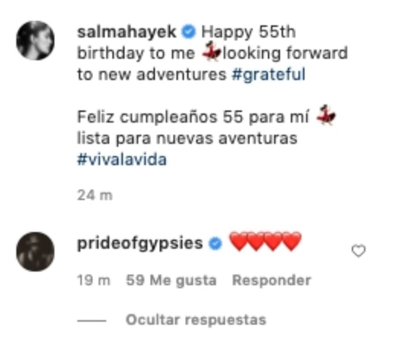 Con solo unos minutos desde su publicación, Salma Hayek ha obtenido cientos de miles de "likes", así como diversos comentarios, recibiendo muchas felicitaciones de parte de sus seguidores, además de que se destaca un comentario del actor Jason Momoa, que le colocó algunos corazones.
