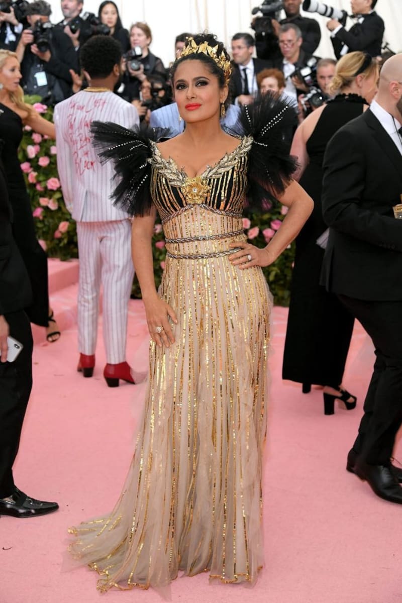 Para la MET Gala de 2019, la última celebrada en el primer lunes de mayo, con temática “Camp: Notes of Fashion”, Salma Hayek asistió en un impresionante look de Gucci, con el que se fotografió con las hermanas Jenner e incluso con Anna Wintour.