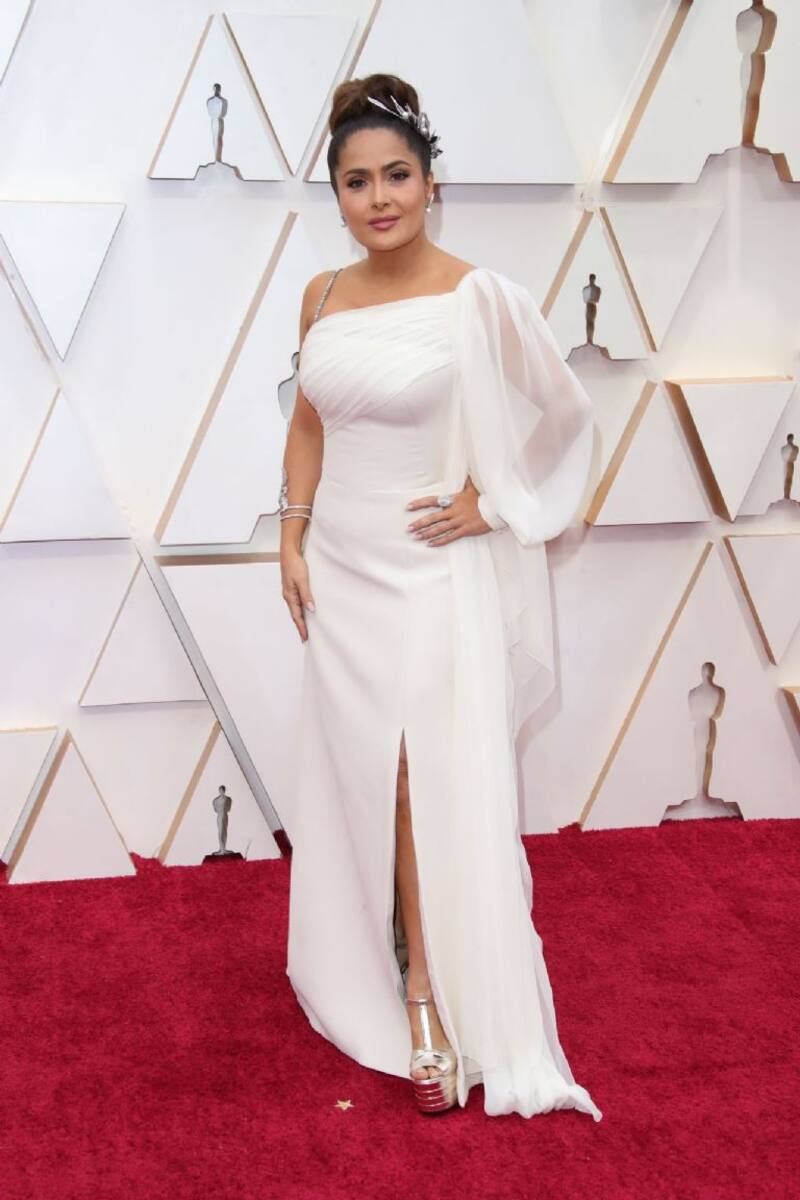 Fue una de las últimas alfombras rojas a las que asistió Salma Hayek antes de la pandemia, y lo hizo de una manera impresionante en un vestido blanco de Gucci, que acompañó con accesorios en oda a la cultura griega.