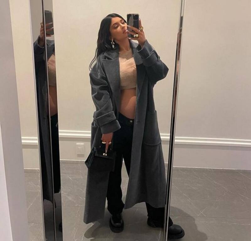 Jenner estuvo en la edición pasada de la Semana de la Moda de Nueva York 2021, donde dejó ver su "baby bump" luego de que hace unos días anunciara desde sus redes sociales que ella y Travis Scott esperan a su segundo hijo, publicación que rebasó los 300 mil comentarios, entre los que destacan los de Justin Bieber y Gigi Hadid.