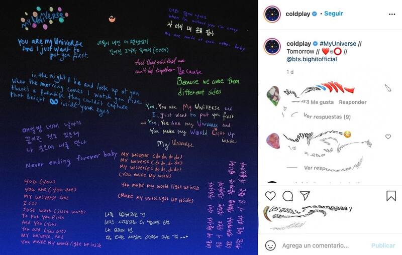 A menos de un día del estreno de "My Universe", el nuevo sencillo de Coldplay x BTS, el video supera 15 millones de reproducciones y en las primeras horas fueron tendencia con más de 3 millones de tuits. La canción, escrita por los ingleses en colaboración con los coreanos, tiene versos en ambos idiomas.