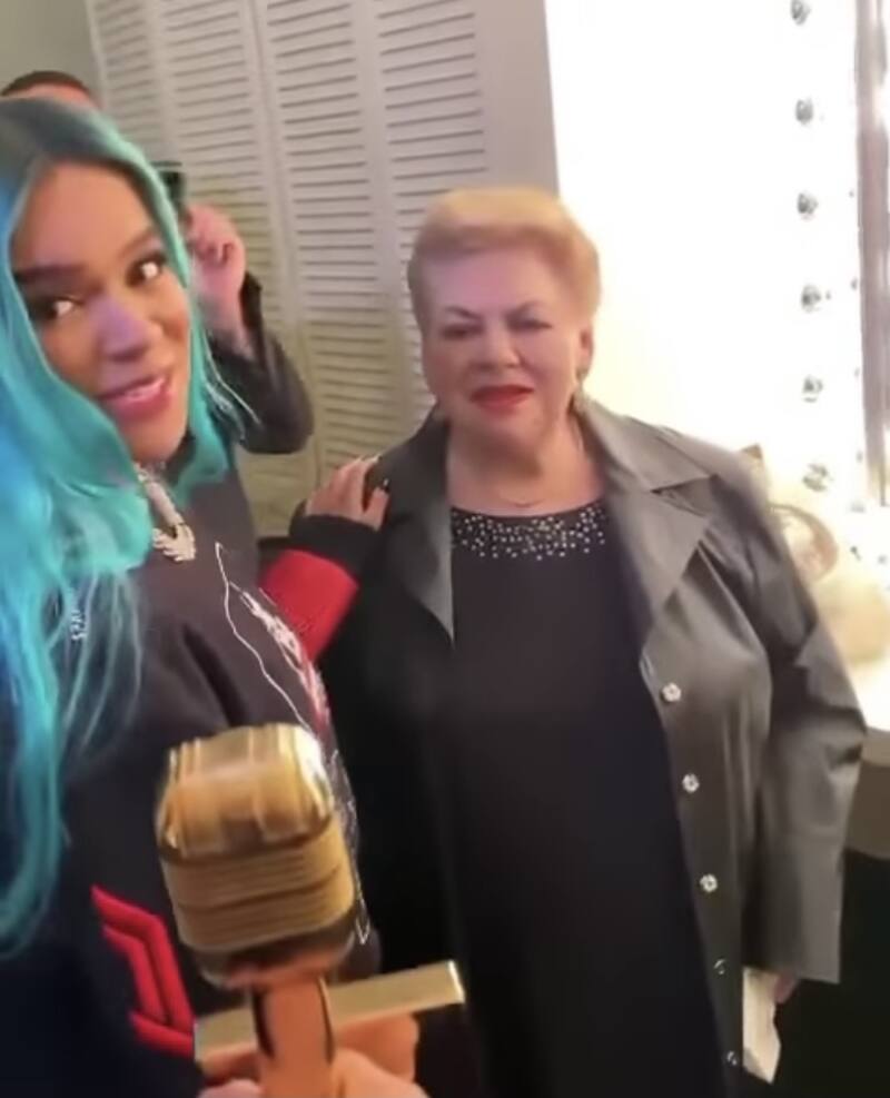 Otros como Karol G aprovecharon tras bambalinas para para saludarla y refrendarle su admiración, además de hacer hincapié en que su estilo y el sentimiento que pone a sus interpretaciones, le fascina: "es un honor conocerla. Me encanta".