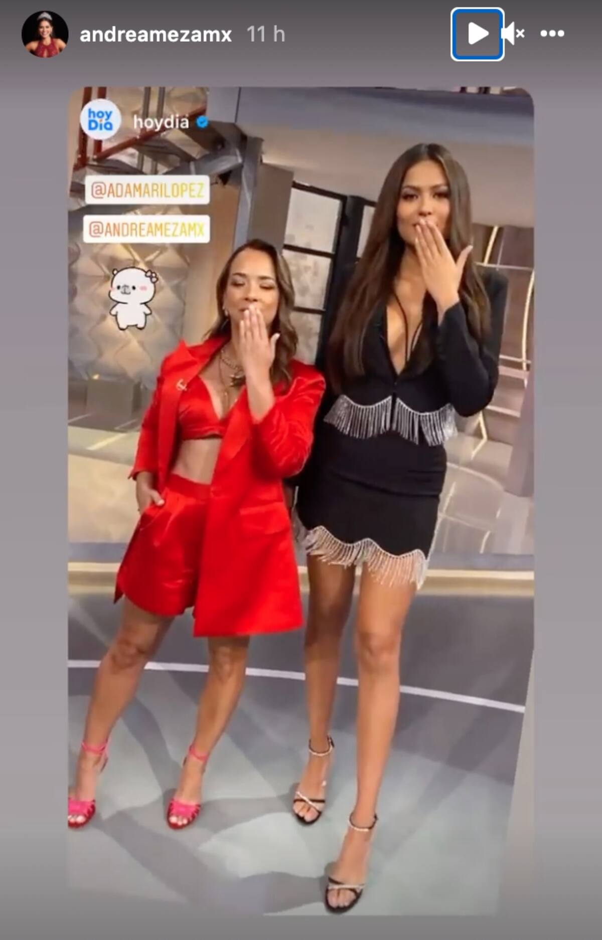 En "Hoy día", la Miss Universo compartió cámara con la querida Adamari López, con quien demostró tener una gran sintonía, al punto de grabar un pequeño boomerang en el que ambas aparecen lanzando un beso, con lo que además causaron suspiros.