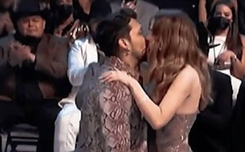 Por su parte, Christian Nodal portó un saco animal print en tonos rosas que hacía juego con el vestido y makeup de Belinda, además de utilizar una playera negra, botas y un sombrero vaquero.