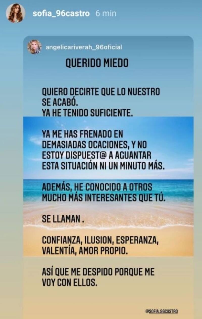 No obstante que la cuenta de Rivera es privada, el mensaje fue compartido por su hija Sofía Castro en sus historias de Instagram, el cual acompañó con la frase: "Te amo".