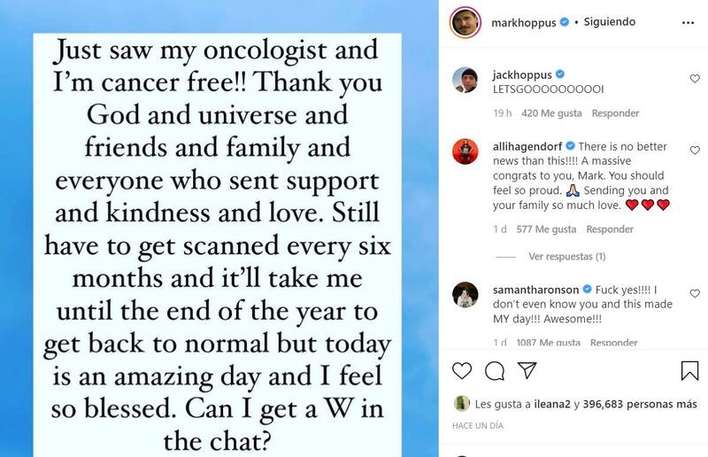El nuevo reporte médico del cantante llega una semana después de que el integrante de Blink-182 publicó una fotografía en dicha red social en la que mostraba cómo le estaba creciendo su cabello poco a poco después de las fuertes dosis de quimioterapia que recibió.