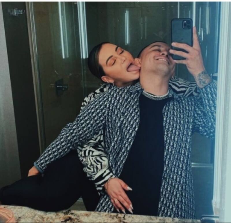 La fotografía que suscitó los rumores fue una que el fotógrafo de Karol G compartió a través de sus historias en Instagram en la que se puede ver que Chiquis lame la parte baja de su oreja mientras lo abraza con la otra mano.