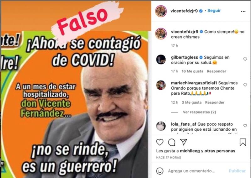 Los rumores comenzaron cuando, en su portada, la revista aseguró que el cantante de 86 años de edad se había infectado de SARS-CoV-2 "¡Ahora se contagió de COVID! A un mes de estar hospitalizado, Don Vicente Fernández ¡No se rinde es un guerrero!", se puede leer en la publicación.