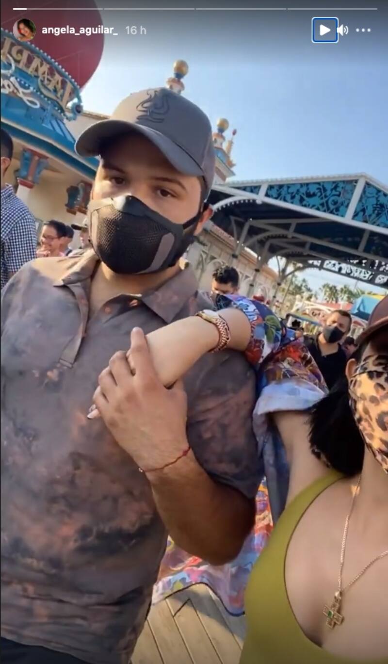 Mientras que Aneliz Aguilar capturó el ambiente del parque temático, Ángela Aguilar comentó a su hermano Leonardo, en una de sus primeras Instagram Stories: "Estamos caminando en un mundo muy mágico, Leonardo", mientras colocaba sus brazos sobre el hombro de él.