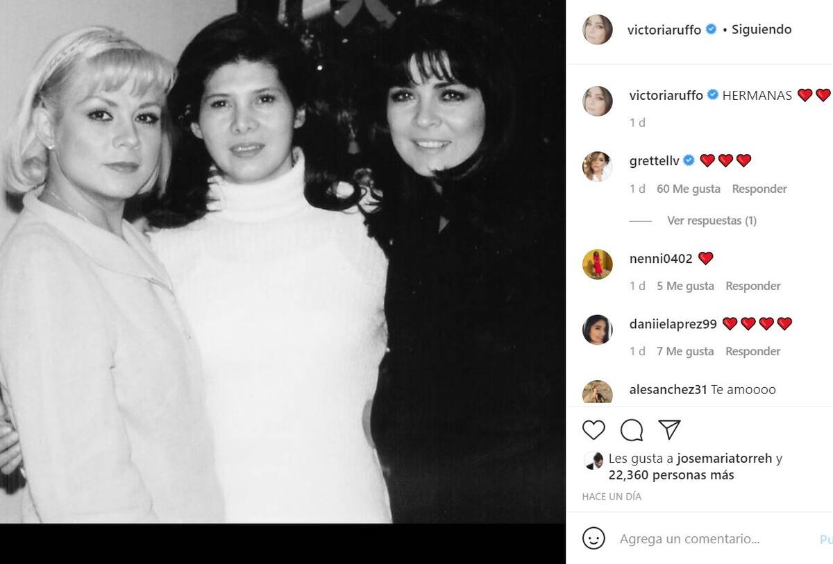 La publicación de la madre de José Eduardo Derbez, cuenta con más de 22 mil likes y cientos de comentarios tanto de famosos como Maribel Guardia y Grettel Valdez, así como de su fanáticos, que le muestran su cariño elogiando la belleza de las Ruffo, "Hermanas" y algunos emojis de corazón fue la descripción que Victoria hizo a su bello posteo.