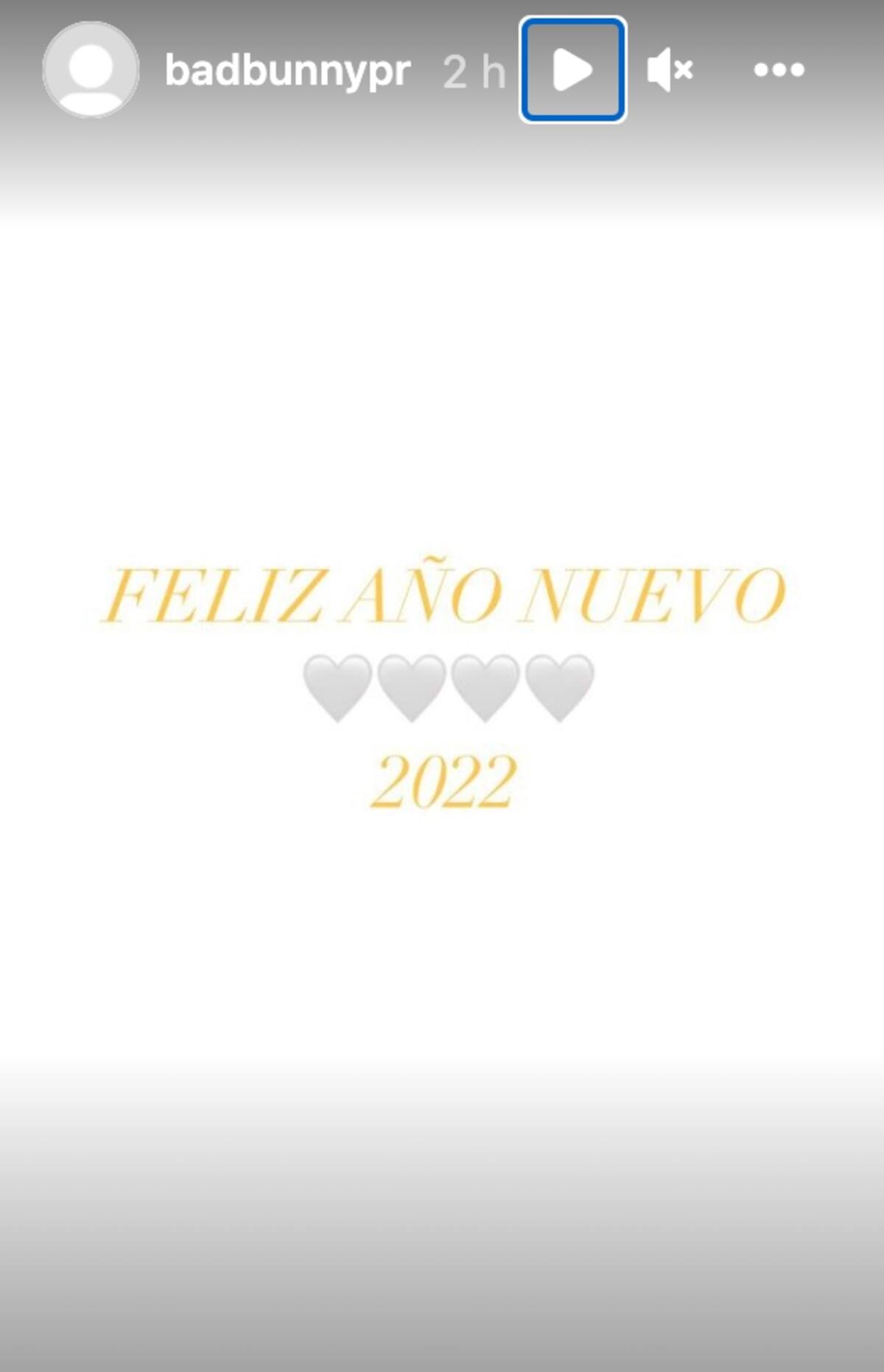 La última publicación del cantante de temas como "Lo siento BB:(" en Instagram, fue una historia en la que escribió: "Feliz Año Nuevo 2022". Sin embargo, Bad Bunny no dio más pistas y razones de la eliminación de sus fotografías.