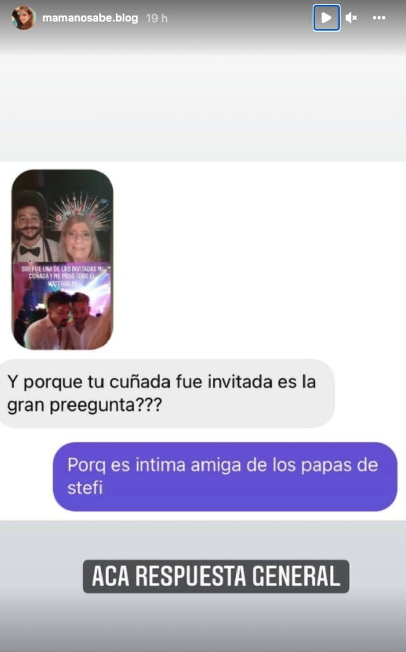 De acuerdo a la bloguera argentina, su cuñada es muy amiga de los papás de Stefi Roitman y por eso fue una de las invitadas a la boda; además confesó que cuando Tini y Sebatián Yatra veían a alguien acercarse con un celular, se alejaban.