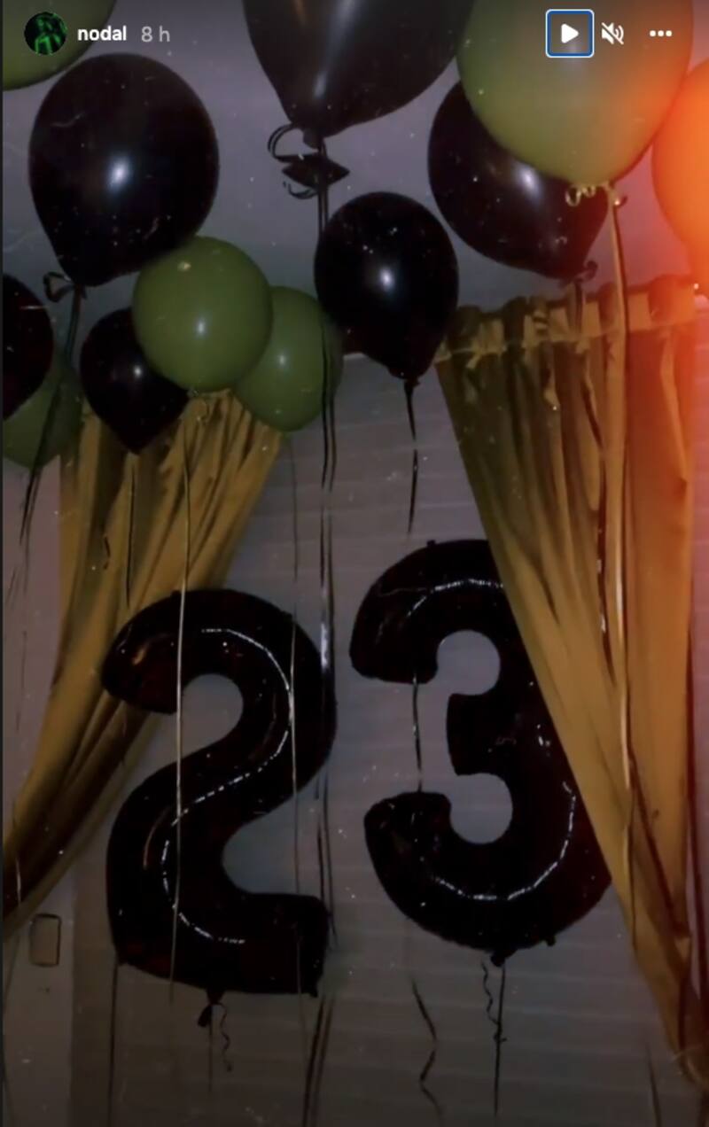 A través de sus Instagram Stories, Christian Nodal compartió algunas imágenes sobre la sorpresa que le preparó Belinda, y en éstas se pueden ver algunos de los adornos con los que la cantante lo celebró, globos que decían "Feliz Pre Cumpleaños", así como un enorme "23".