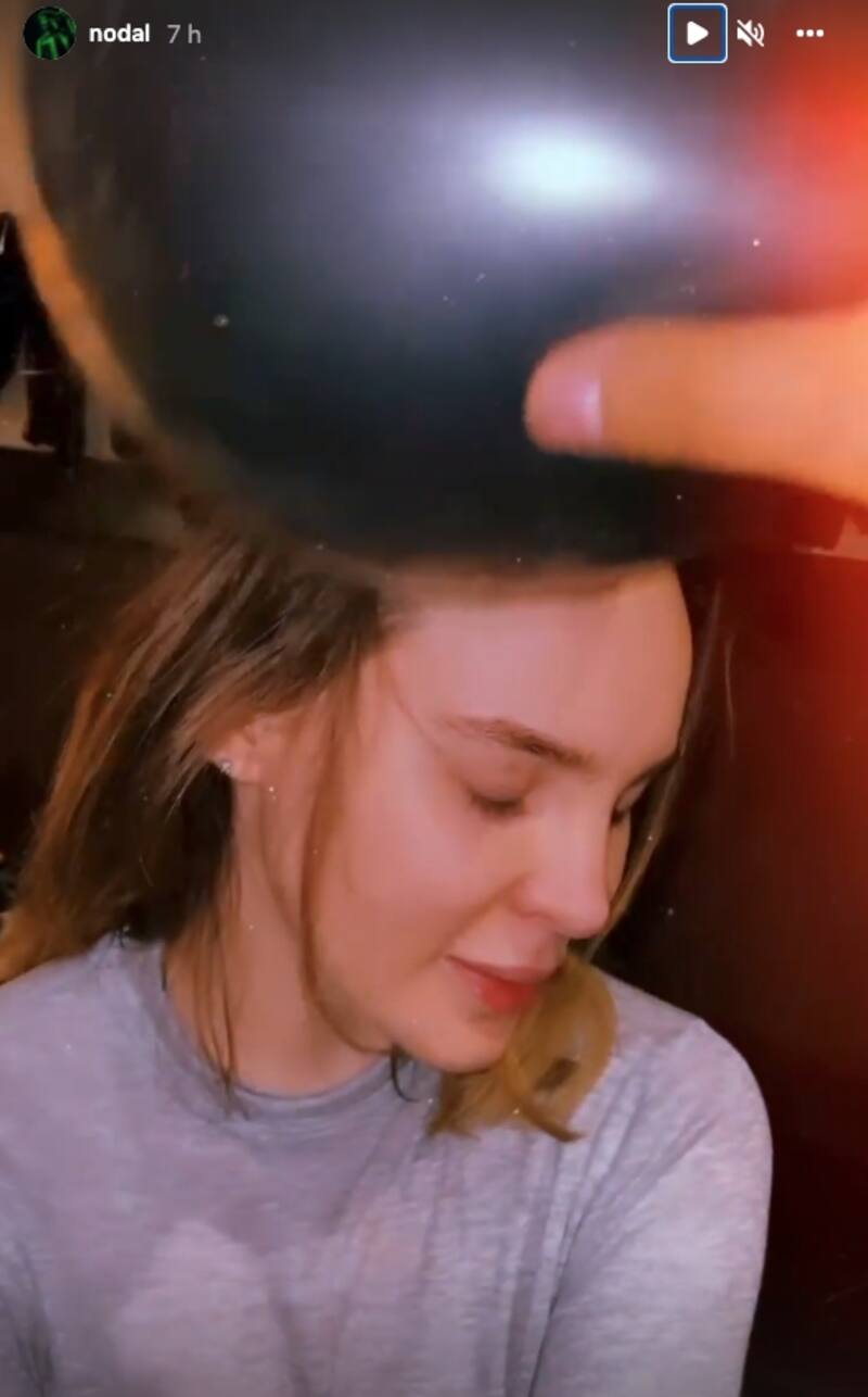 En otras Instagram Stories, se puede ver a la pareja muy feliz y sonriente, Christian Nodal compartió ese momento en el que con un globo hace fricción en el pelo de Belinda, mientras ella sonríe a la cámara.