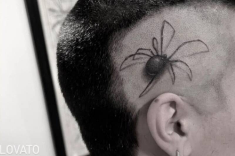 Etiquetó al tatuador Dr. Woo, quien ha destacado por su trabajo hiperrealista creando imágenes impresionantes (y escalofriantes también) en la piel de sus clientes. Demi Lovato parece tener verdaderamente una araña sobre su cabeza.