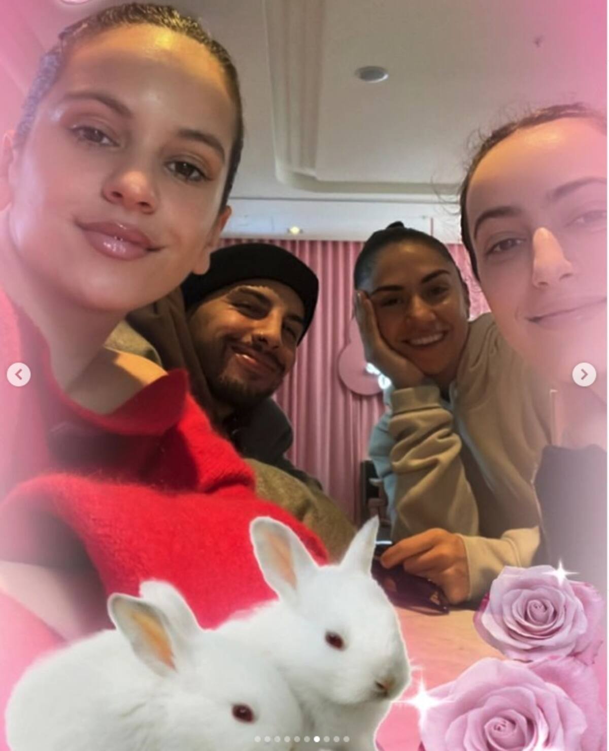 La publicación de Rosalía es conformada por algunas fotografías de la cantante con algunos edificios de Londres de fondo, así como algunas otras a detalle de su look, y una en especial junto a Rauw Alejandro y algunas amigas.