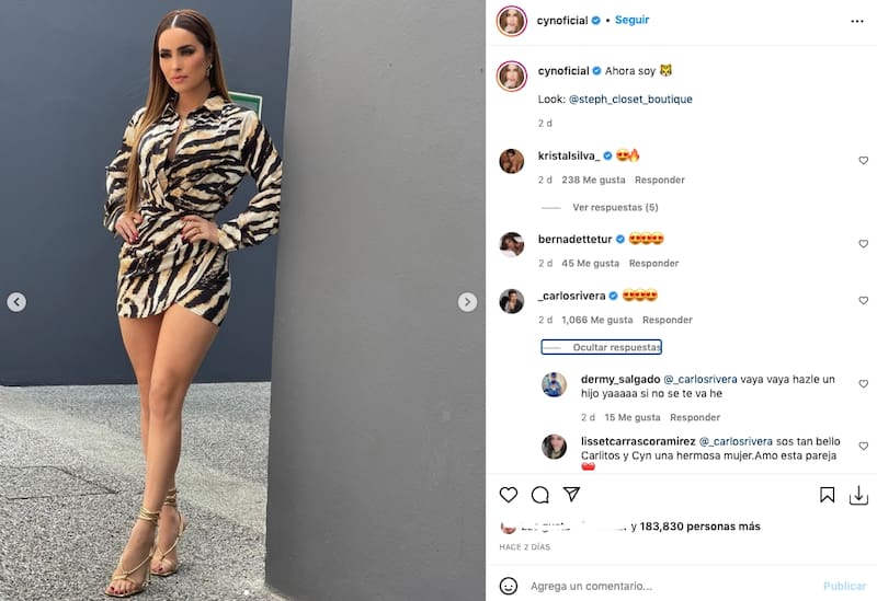 Además de llamar la atención de sus más de tres millones de seguidores en Instagram, las fotos robaron los suspiros de Carlos Rivera, quien comentó la publicación con emojis de "enamorado", al cual reaccionaron algunos usuarios con expresiones como: "Hazle un hijo yaaaaa, si no se te va eh".