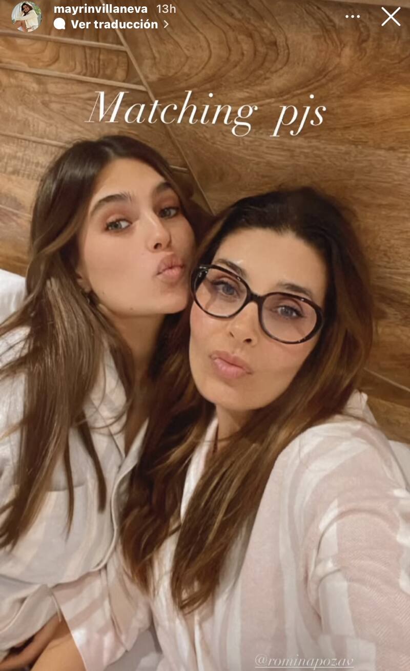 A través de sus historias de Instagram, la actriz de telenovelas como "Mi corazón es tuyo" y "Si nos dejan" presumió que disfrutaba de la compañía de su hija Romina Poza, fruto de su matrimonio con el actor Jorge Poza. En la fotografía aparecen ambas luciendo una pijama combinada y lanzando besos a la cámara.