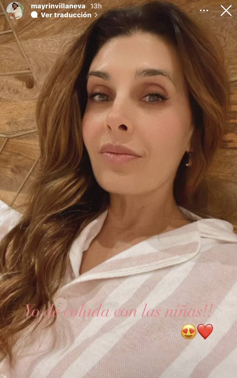 En la segunda historia aparece solo Mayrín Villanueva desde la cama, confirmando que no necesita de un maquillaje cargado para verse guapa. "Yo de colada con las niñas", escribió la actriz seguido de un emoticón de corazón.