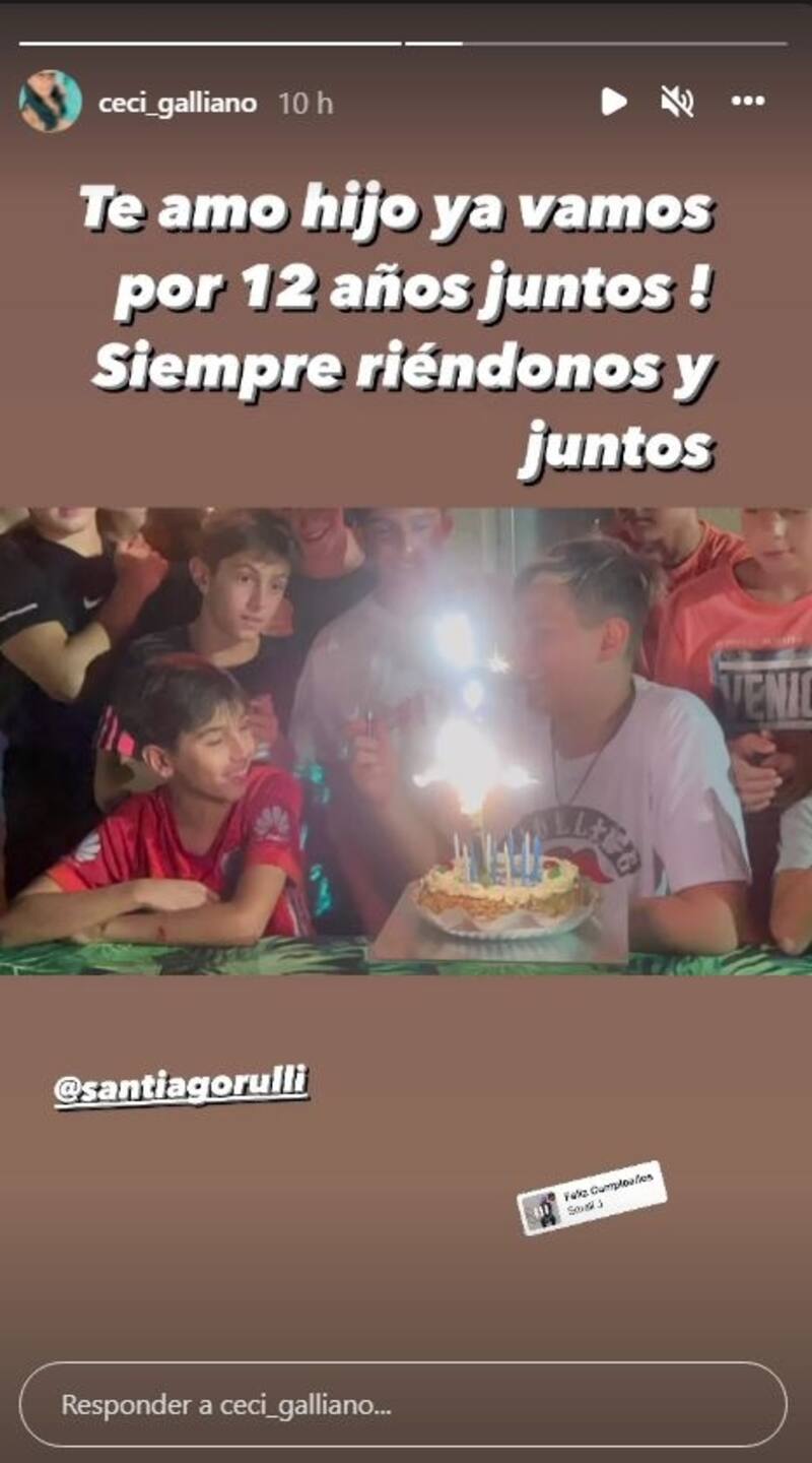 "Llegaste a mi vida hace 12 años para llenarme de Amor y demostrarme que mi corazón es capaz de amar sin límites. Me hace muy feliz verte crecer!! Deseo que nunca te rindas y que todo lo que sueñes se haga realidad. Hemos vivido tantos momentos hermosos que llevo grabados en mi mente y corazón…Te amo Principito", escribió al pie de una foto en la que aparece él cargando al menor sobre los hombros.