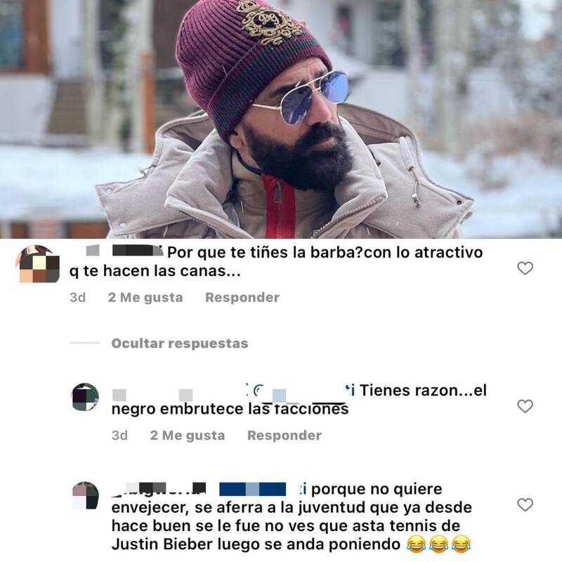 "¿Por qué te tiñes la barba? Con lo atractivo que te hacen las canas", escribió una de sus seguidoras. Al mensaje se le unió una persona más que no dudó en burlarse del cantante: "Porque no quiere envejecer, se aferra a su juventud que ya desde hace un buen se le fue. No ves que hasta tenis de Justin Bieber luego se anda poniendo", escribió seguido de emoticones con risas.