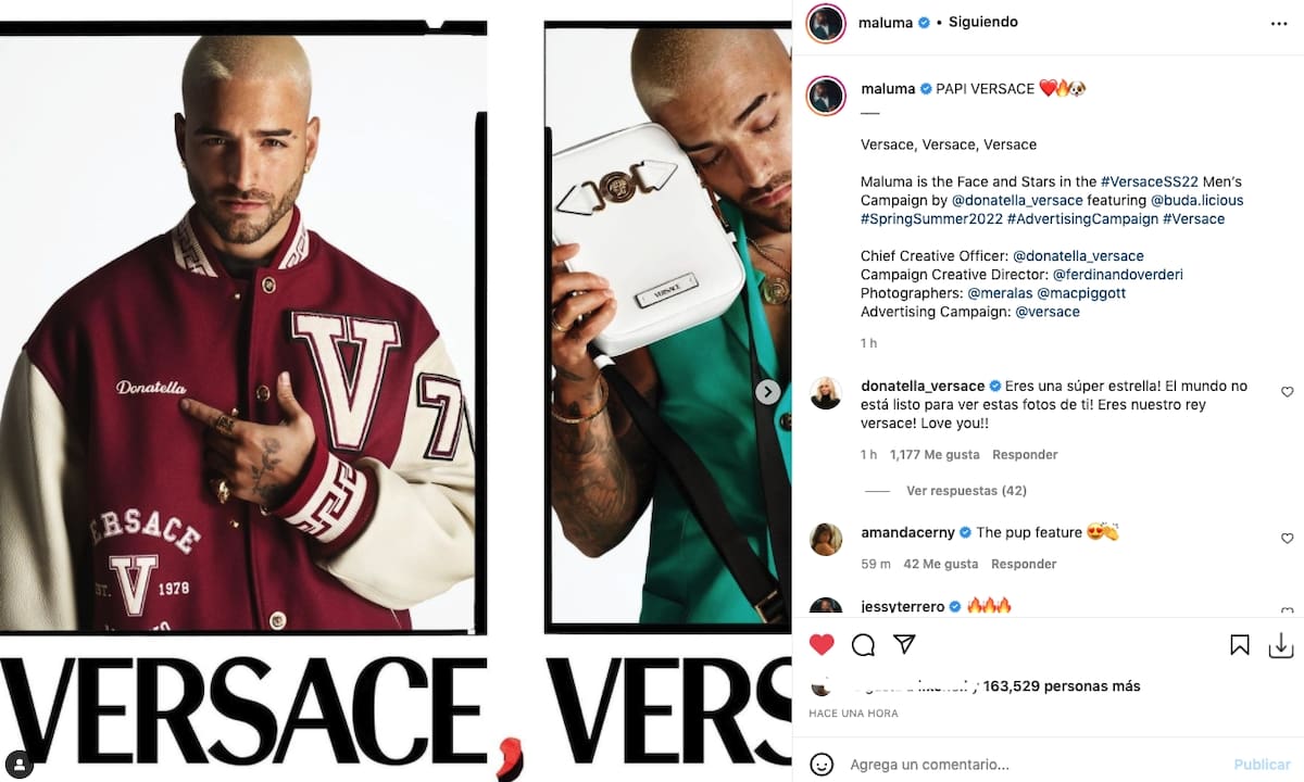 En su propio perfil, Maluma compartió la serie de fotografías acompañadas de un "Papi Versace", una publicación que fue comentada por la icónica Donatella Versace, directora creativa de la marca.