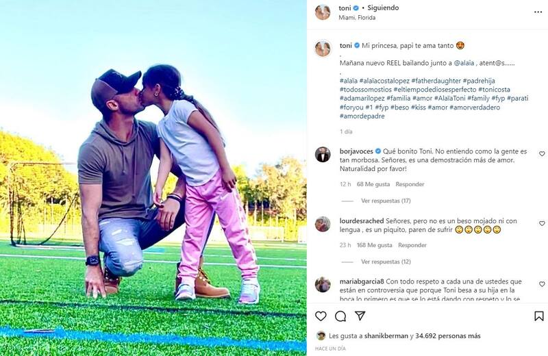 "Muy hermoso, pero Toni: oriéntate con un psicólogo que aconsejó que los hijos no se besan en la boca y explicó los porqués. Es tu hija, pero un experto te puede explicar el porqué", escribió un usuario.