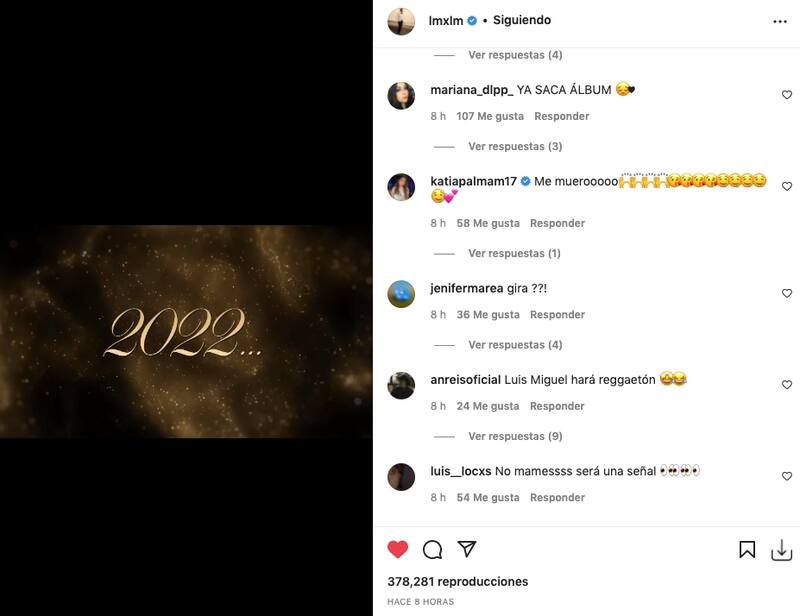 Como es costumbre en el perfil de Luis Miguel, la publicación en cuestión no fue acompañada por ninguna descripción, sin embargo, sus seguidores no perdieron la oportunidad para especular el significado del video, argumentando que podría tratarse de un lanzamiento para 2022.