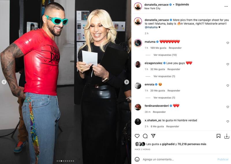 Maluma es el rostro y la estrella de la nueva campaña de Versace por su colección masculina Primavera/Verano 2022, y al tanto, la icónica directora creativa y diseñadora de la famosa firma italiana, Donatella Versace, mostró su emoción por haber trabajado con el colombiano.