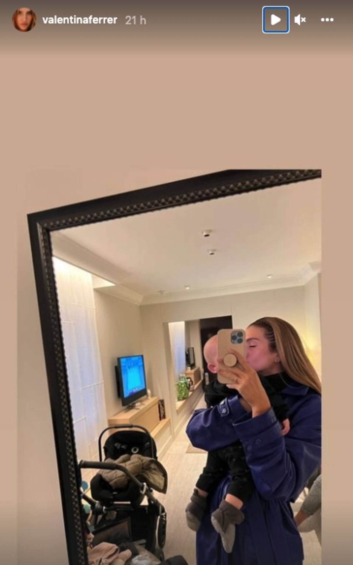 De acuerdo a las historias de Valentina Ferrer en Instagram, la pareja viajó a París acompañada de Río, su pequeño hijo que nació a mediados de 2021, pues en una de sus publicación, la modelo aparece frente a un espejo con su hijo.
