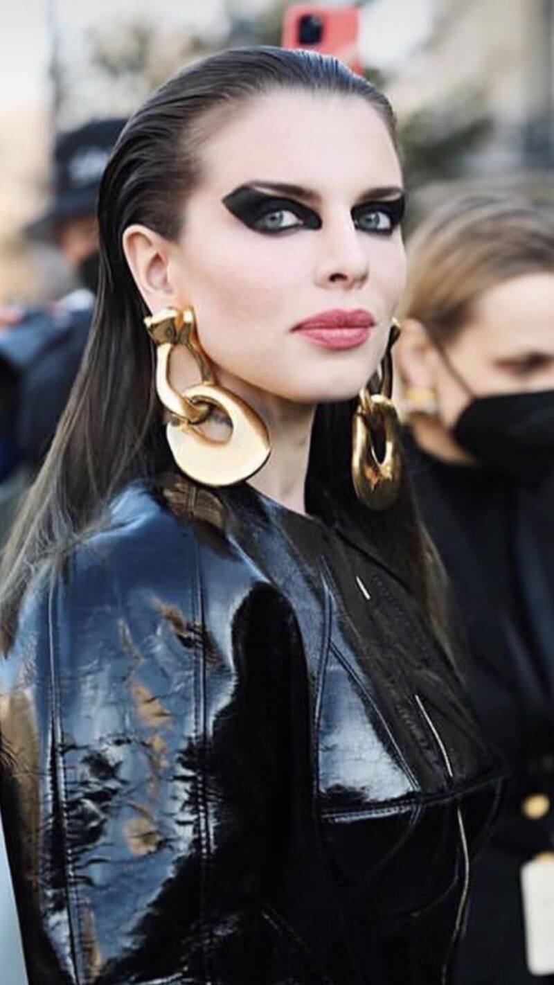 Julia Fox subió una foto de ella con el rapero en que escribió "Juliye" y la acompañó con un emoji de un corazón negro. En la foto, ambos lucen de negro y Kanye West luce una capucha y guantes del mismo color. La actriz porta unos aretes gigantes con un pesado maquillaje de ojos negro.