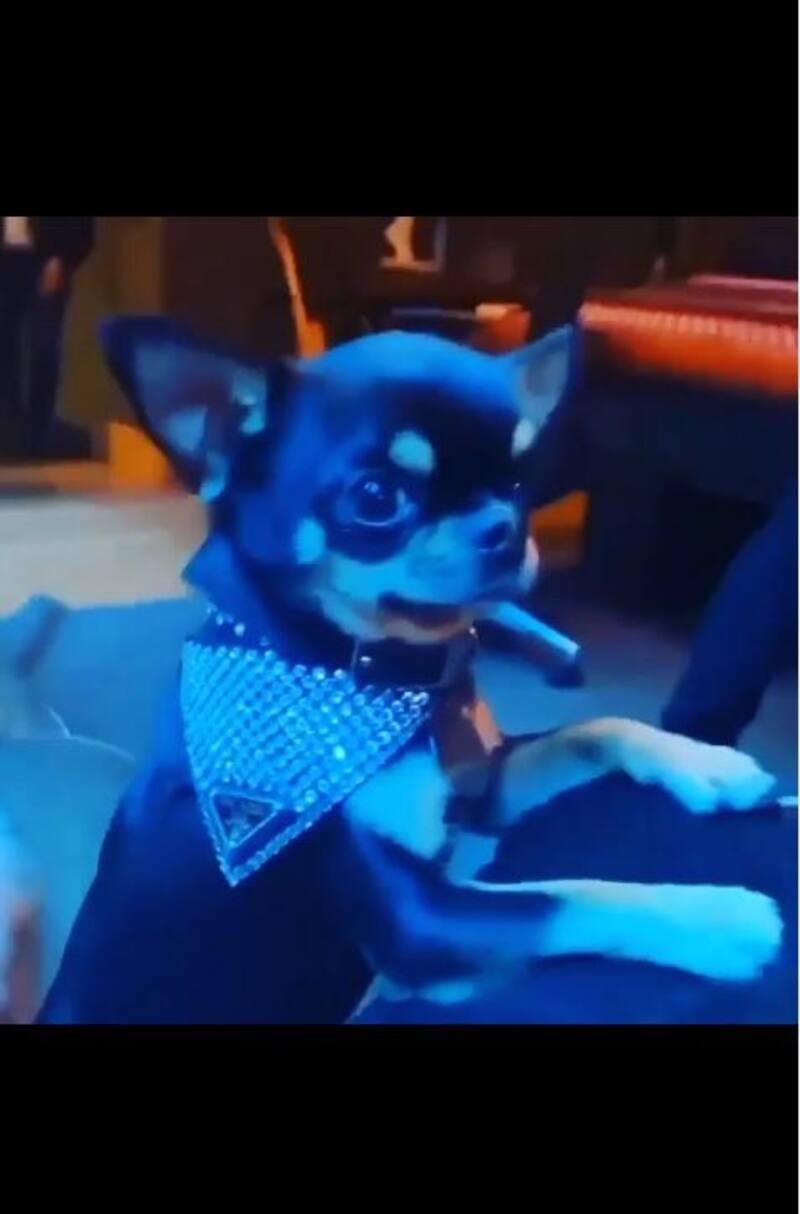 Fanáticos de la guapa rubia fueron quienes notaron el ostentoso regalo del perrito, luego de que ella publicó una foto desde el estudio de grabación en la que se ve al cachorro con un pañuelo lleno de cristales brillantes.