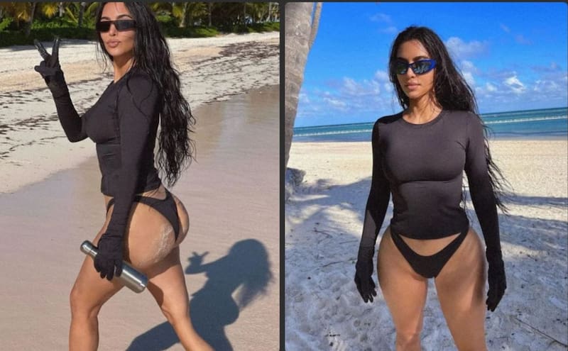 En la imagen, la socialité y ex de Kanye West, aparecía posando en un diminuto traje de baño color negro, en el que dejaba expuestos sus atributos, algo que sus fanáticos dejaron de lado y se enfocaron en exhibir que su pierna se veía deforme y con una curva extraña.