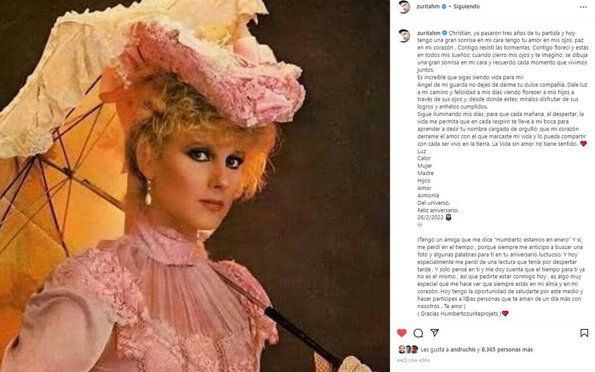 Humberto Zurita utilizó su cuenta de Instagram para dedicarle a su fallecida esposa, la actriz Christian Bach un emotivo mensaje a tres años de su muerte.