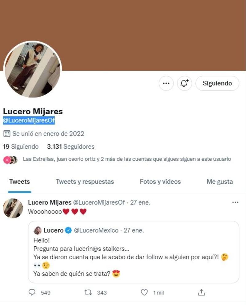 Así lo anunció el pasado 27 de enero, cuando dio de alta su cuenta de Twitter oficial @LuceroMijaresOf, la cual hasta el momento ya registra más de 3 mil seguidores.