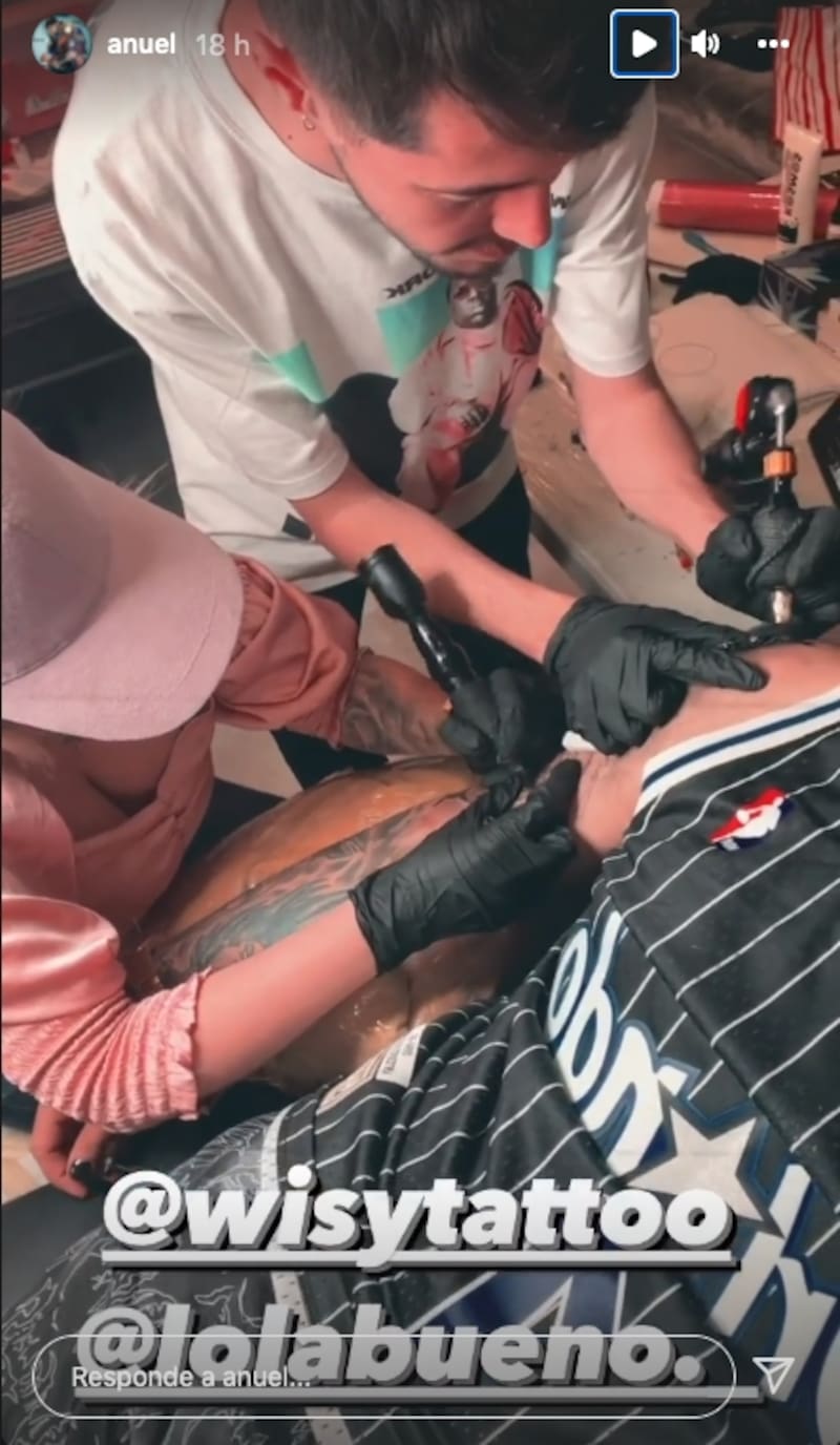 Luego de mencionar: "Después de este vamos para la espalda", Anuel AA compartió un video en el que se puede observar cómo desprenden de su espalda la plantilla de lo que sería el nuevo diseño del tatuaje que cubriría su espalda.