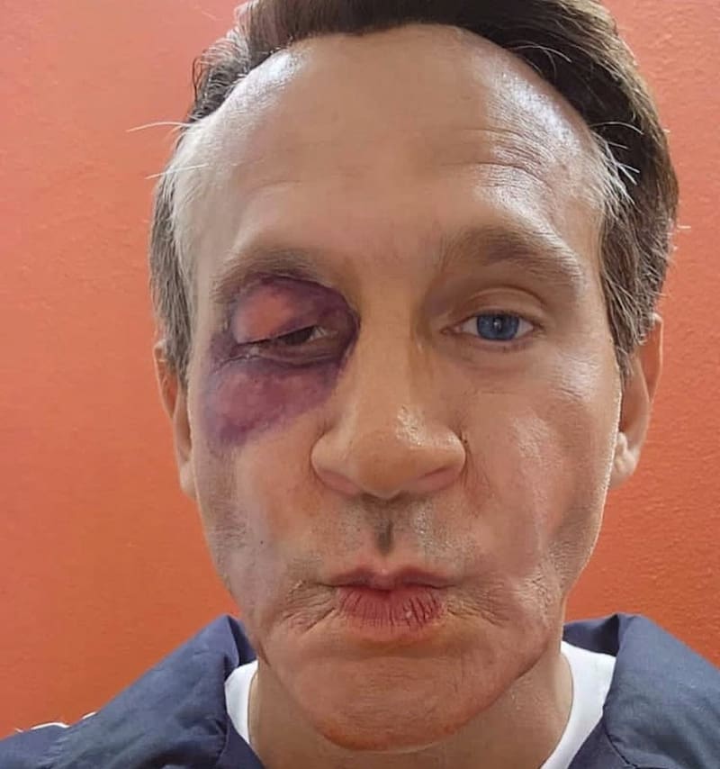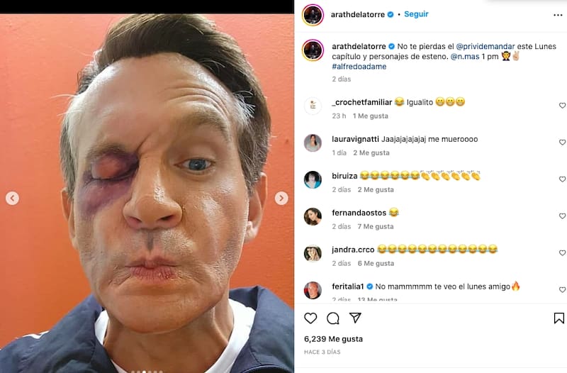 Arath de la Torre subió a su cuenta de Instagram una foto en la que aparece caracterizado como Alfredo Adame luego de haber sido golpeado la semana pasada.