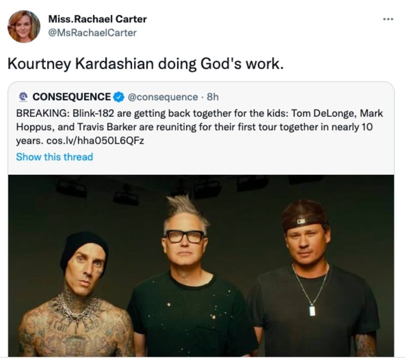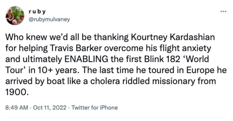 Ella lo conminó a hacer terapia y Travis volvió a subirse a un avión el año pasado. Ahora recorrerá el mundo. Los fans de Blink-182 volvieron tendencia a la mayor de las Kardashian en Twitter.