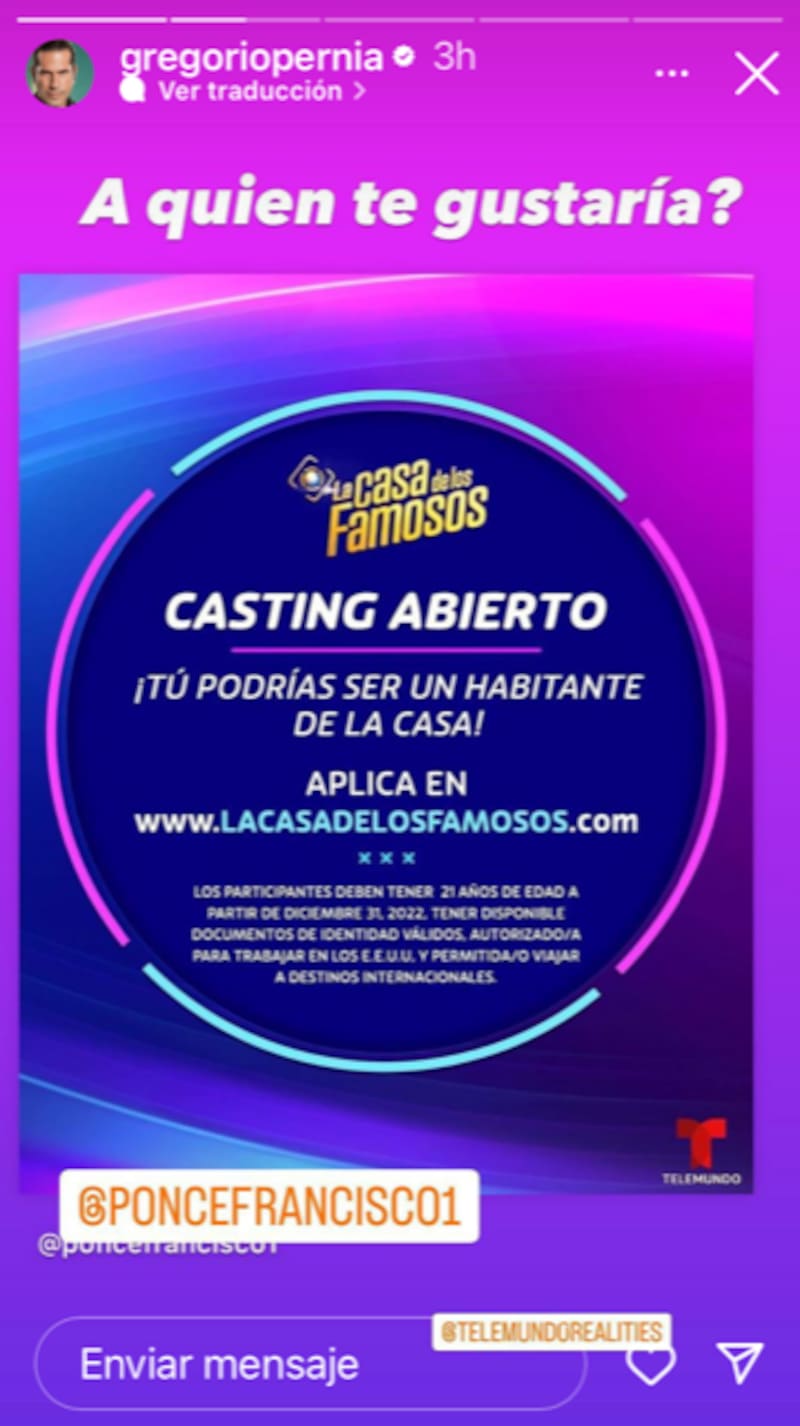 A través de sus redes sociales, "La casa de los famosos" ha abierto su convocatoria, donde los requisitos son tener 21 años de edad a partir de diciembre de 2022, tener disponibles documentos de identidad válidos, autorización para trabajar en los Estados Unidos y poder viajar a destinos internacionales.