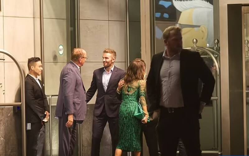 En su primera aparición pública, luego de su exitoso paso por París, Victoria y David Beckham se dieron un tiempo para salir y disfrutar de la vida con algunos amigos. Para la ocasión la diseñadora de moda eligió un vestido midi semitransparente con estampado verde, mientras que David lució un elegante blazer negro y pantalones a juego que combinó con una camisa azul claro.