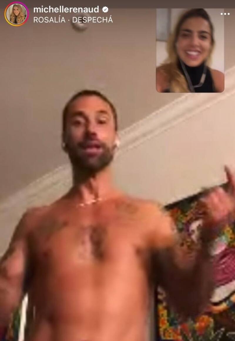 En el video se observa a Renaud y Novoa en una videollamada, cuando comienza a sonar el tema musical de Rosalía, "Despechá", así que el actor con el torso descubierto empieza a bailar, lo cual genera las risas de Michelle Renaud.