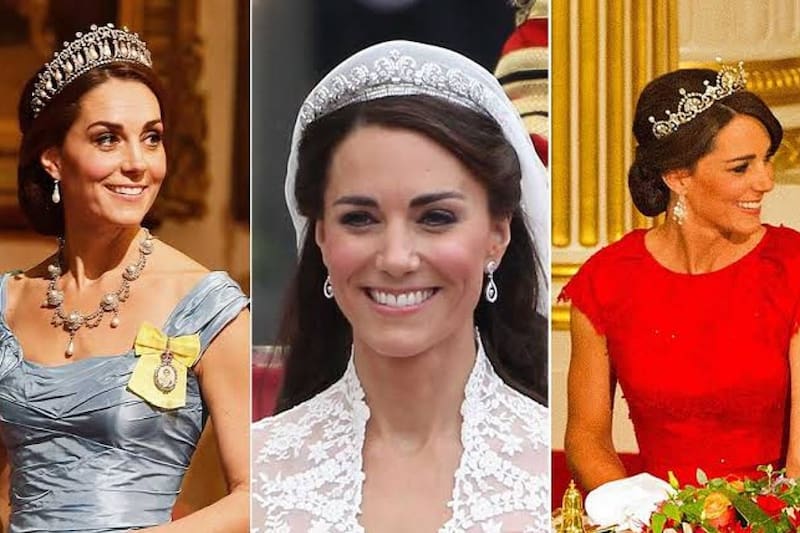 Durante su etapa como duquesa de Cambridge, Kate Middleton únicamente utilizó tres tiaras. En su boda en abril de 2011 en la abadía de Westminster lució la tiara Halo de Cartier, confeccionada por esta joyería en 1936 como regalo de Jorge VI, el padre de la reina Isabel II y por en ese entonces duque de Kent, como regalo para su esposa, la reina madre.