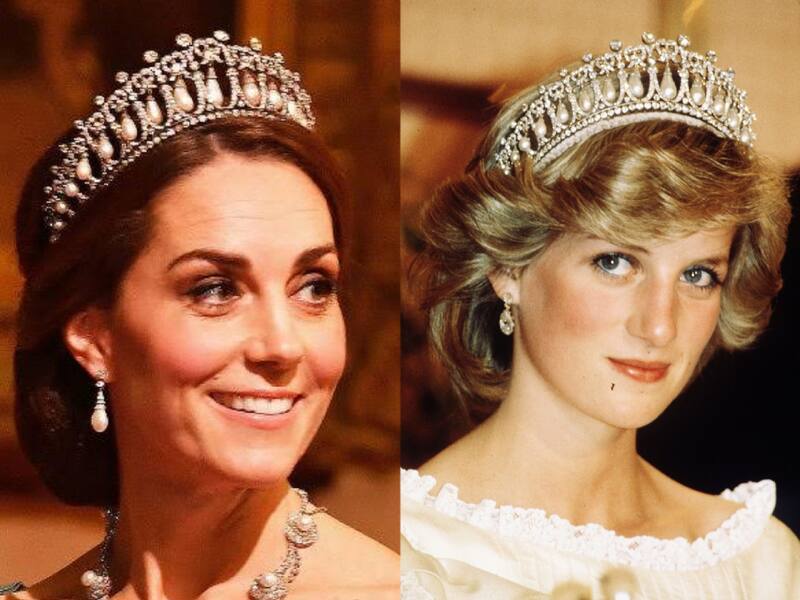 Debido al especial significado que tiene, la tiara Cambridge Lover's Knot sea la elegida por Kate Middleton para este gran día. Esta tiara está asociada a su predecesora, la princesa Diana, y que también ha sido su favorita como duquesa de Cambridge. La última vez que la lució fue en 2019 para asistir a una recepción ofrecida por Isabel II en Buckingham al cuerpo diplomático.